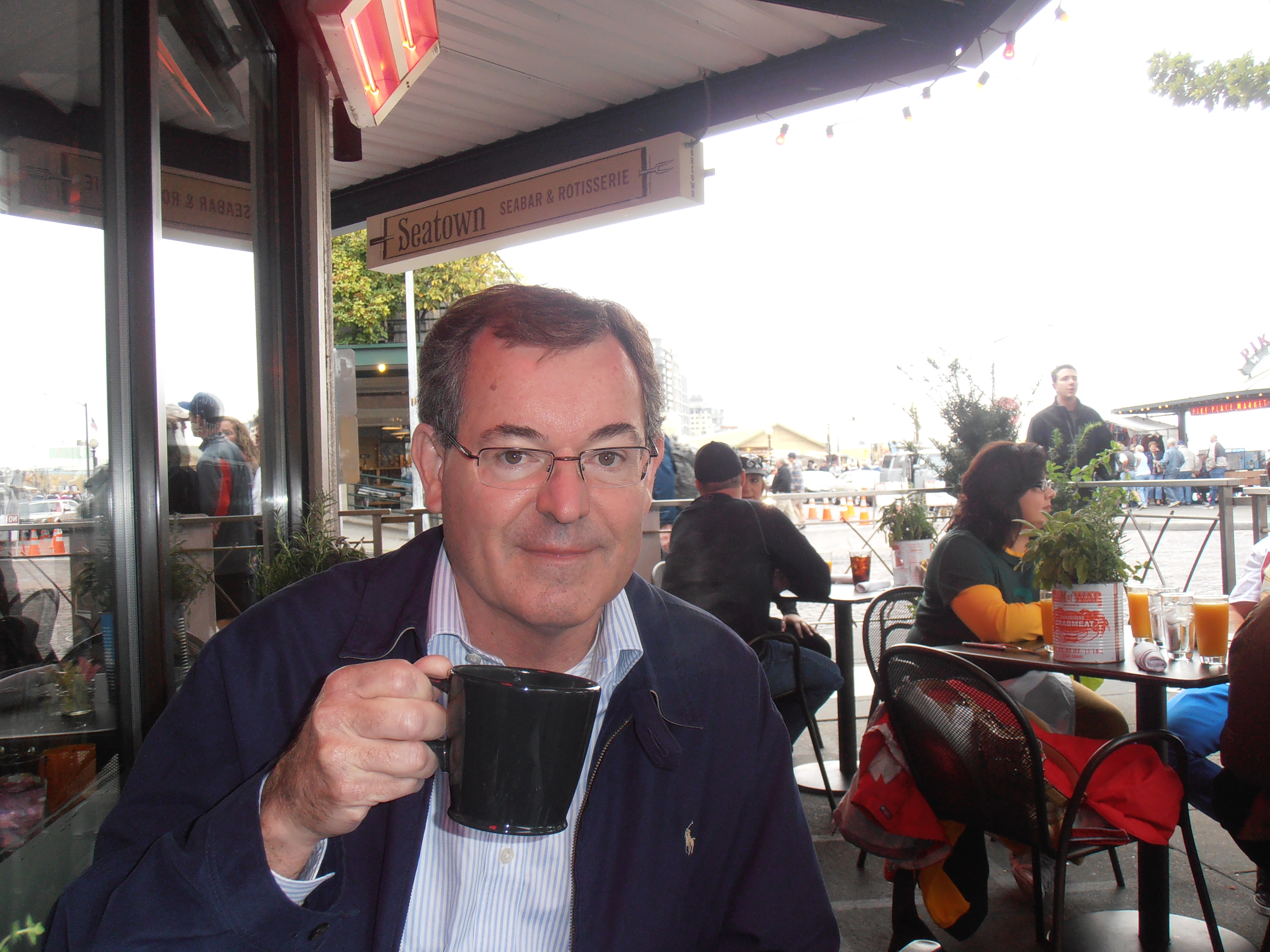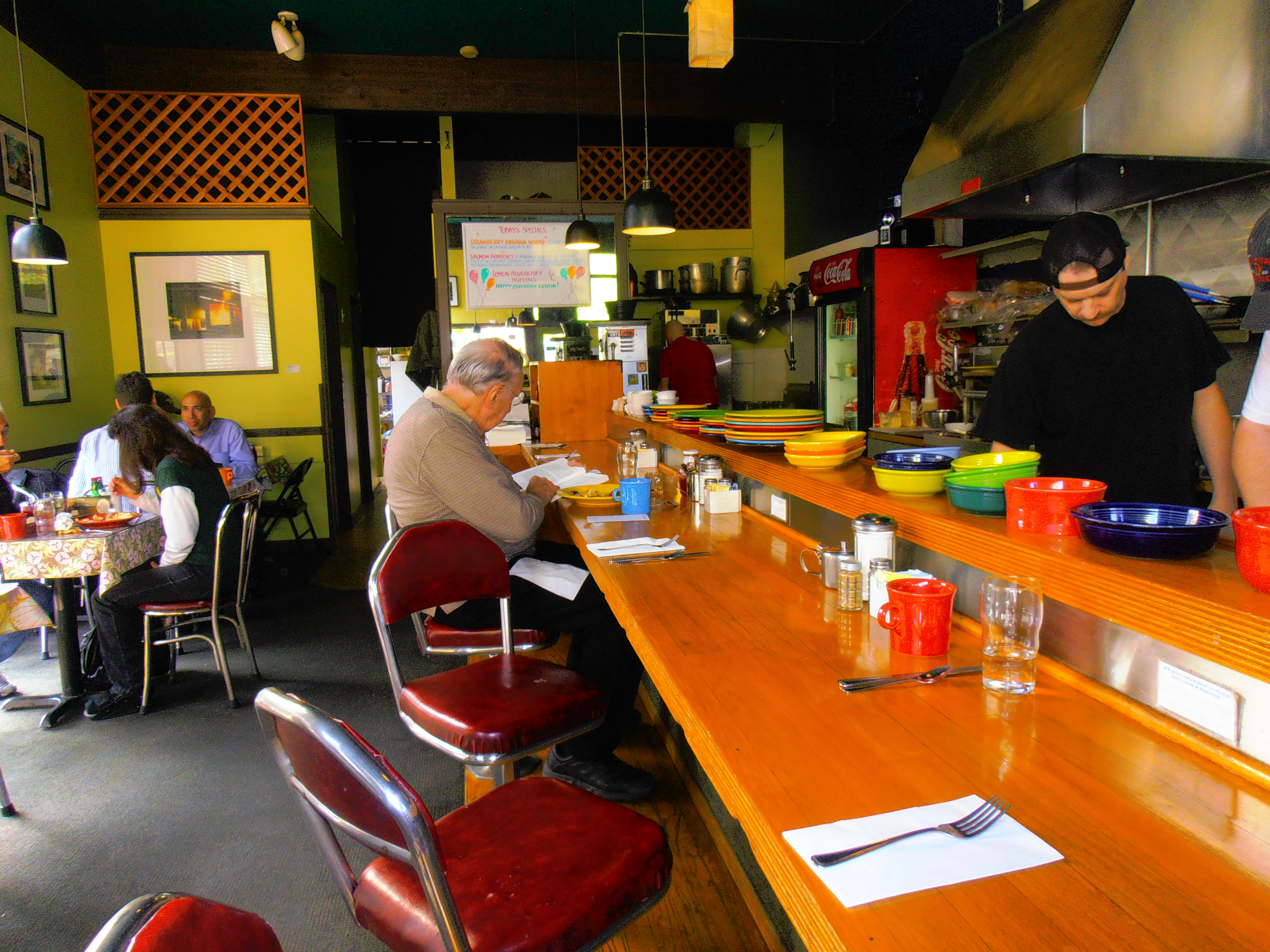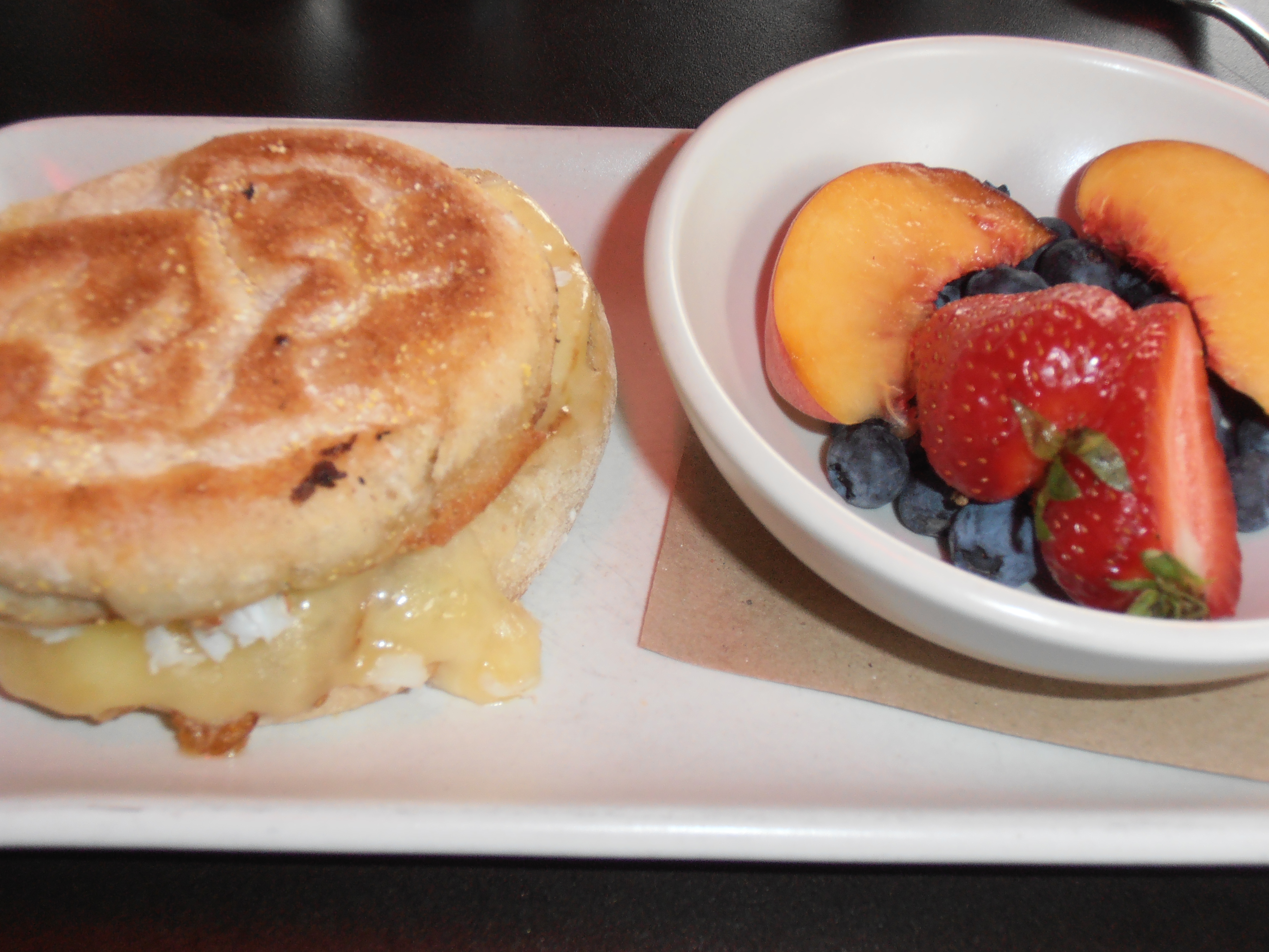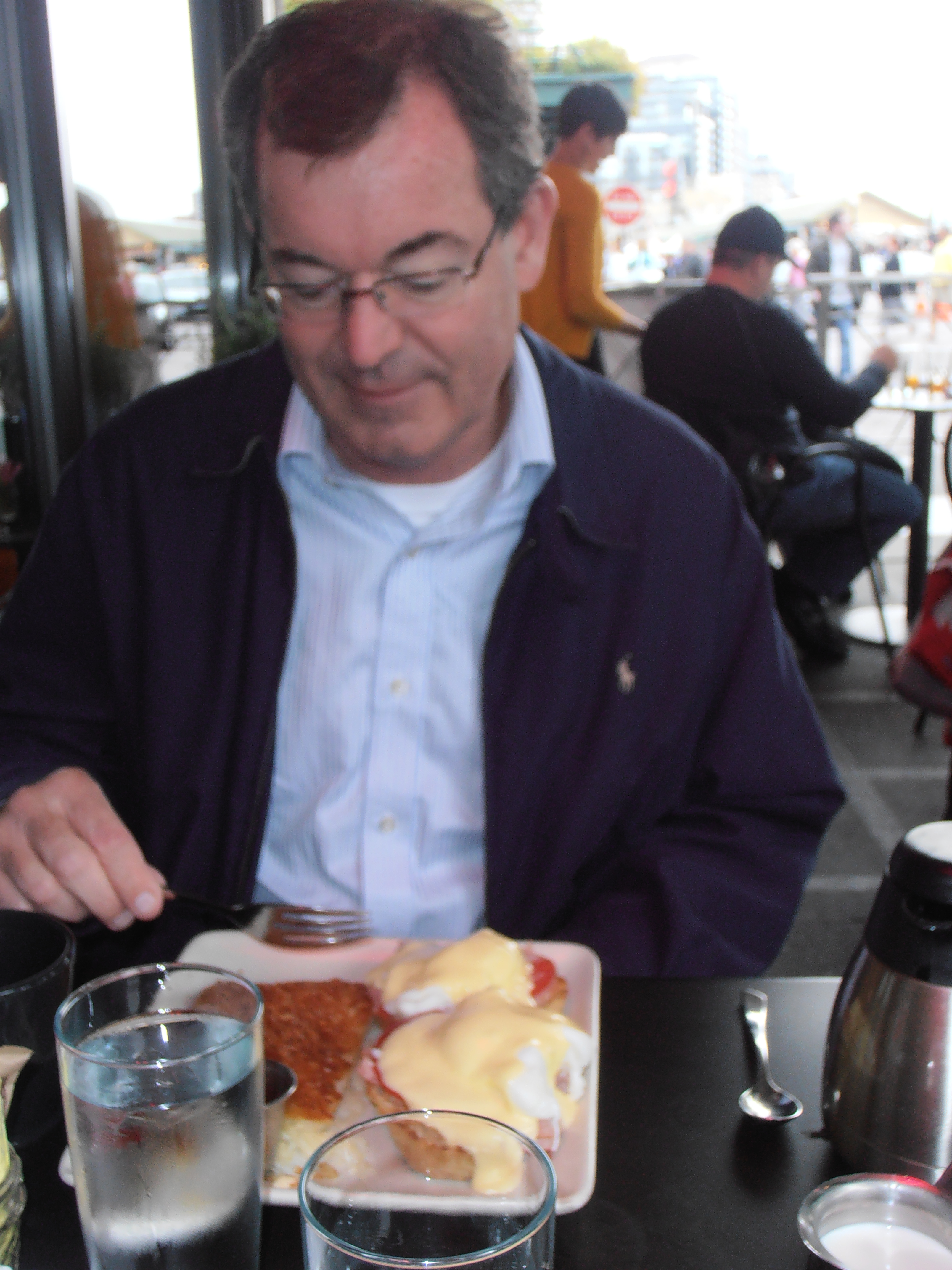 Friday night after meeting Dad at the airport and getting his rental car we drove to mi casa for the grand tour and a long chat into the early morning (EST). Saturday morning we awoke and headed straight to Pike Market for some serious breakfast from Tom Douglas’ Seatown restaurant (note: Bryan and I had been here once before for a weekend brunch). I opted for the super stellar Dungeness crab, avocado, Beecher’s jack cheese, and egg sandwich on a Tom Douglas-owned Dahlia English muffin and a side of fruit. Perfection on my palette. My dining companion choose the classic eggs benedict with hashbrowns. Plus, I love that they have heat lamps for al fresco dining and people watching and stellar coffee.