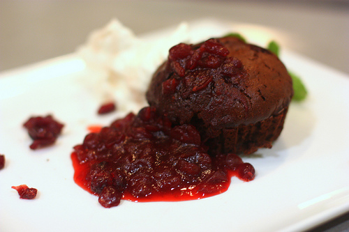 Molten Chocolate Cake, Cranberry Compote